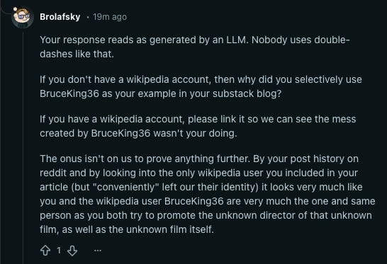 And the moment you critique Wikipedia’s internal culture, even off-platform, those behaviors surface instantly.